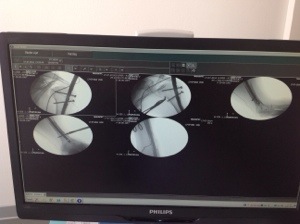 Vanmorgen hebben we de foto’s bekeken van mijn arm met de pen er in.